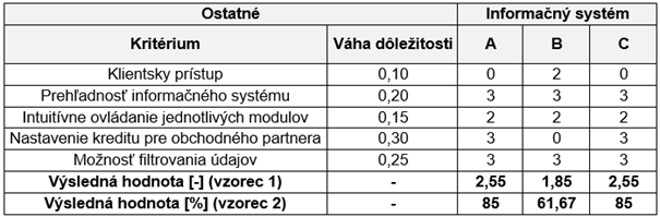 Tabuľka 1 Porovnanie kritérií informačných systémov