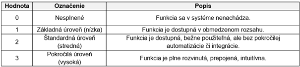 o strednú úroveň, pričom systém spĺňa väčšinu definovaných kritérií.