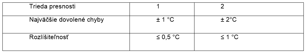 Tabuľka 1 Najväčšie dovolené chyby a rozlíšiteľnosť prístrojov [4]