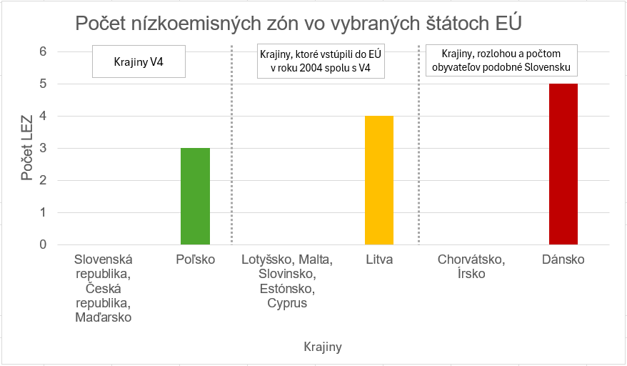 Vzhľadom na to že podľa dostupných údajov sa uvádzalo v roku 2022 v Európe viac ako 320 funkčných nízkoemisných zón (v štátoch EÚ, Veľká Británia a Nórsko) [3], [11], [12] a vplyvom nových zákonov v Španielsku, Francúzsku, Poľsku a Litve [6] sa už v roku 2025 očakával nárast počtu LEZ až na 500, skúmané štáty EÚ, ktoré vstúpili do EÚ v roku 2004, ďalej výrazne zaostávajú.[4]