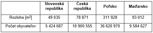 Tab. 1 Porovnanie základných ukazovateľov v krajinách V4
