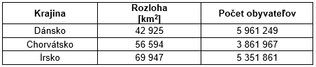 V rámci navrhnutej metodiky sme výskum doplnili o tretiu skupinu štátov. Ide o štáty, ktoré sú rozlohou a počtom obyvateľov najviac podobné Slovensku: Dánsko, Chorvátsko a Írsko. Základné údaje o rozlohe a počte obyvateľov sme uviedli v tabuľke 3.